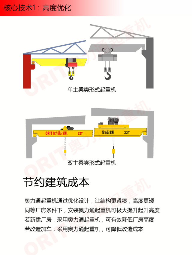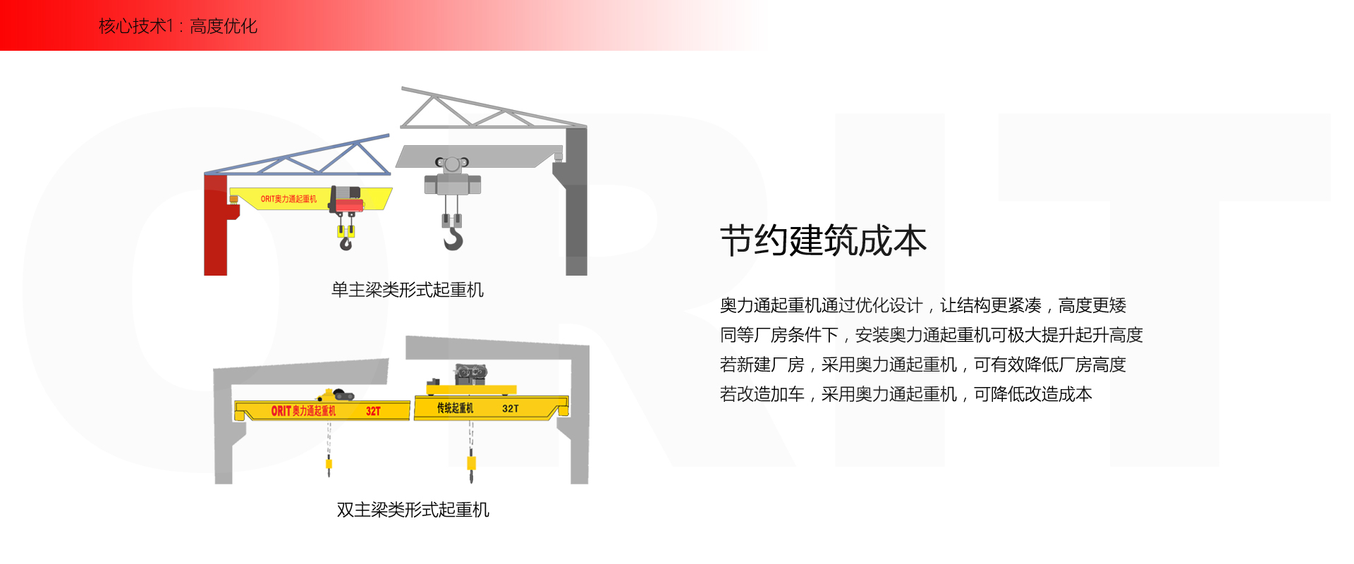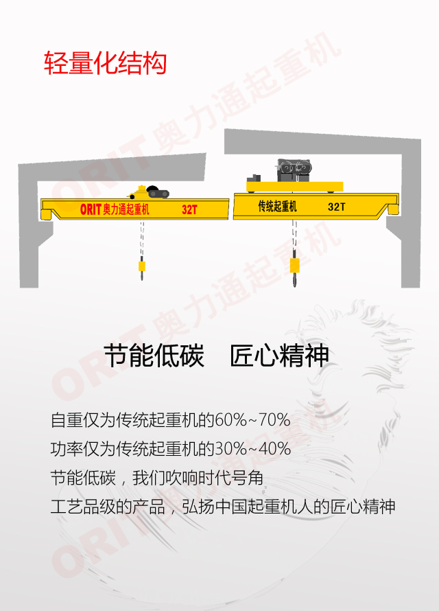 奧力通集起重機研發、制造、銷售、安裝、服務于一體,公司主要生產起重機、橋式起重機、門式起重機、雙梁起重機、單梁起重機、歐式雙梁橋式起重機、歐式單梁橋式起重機、歐式懸掛起重機、多支點懸掛起重機、歐式雙梁門式起重機、歐式單梁門式起重機、歐式半門吊、歐式壁行吊、歐式懸臂吊、歐式輕型起重機等通用標準起重機,以及全自動智能化起重機、冶金類起重機、防爆類起重機、航空專用起重機、核電站專用起重機、造紙專用起重機、電廠起重機等特殊專用起重機。