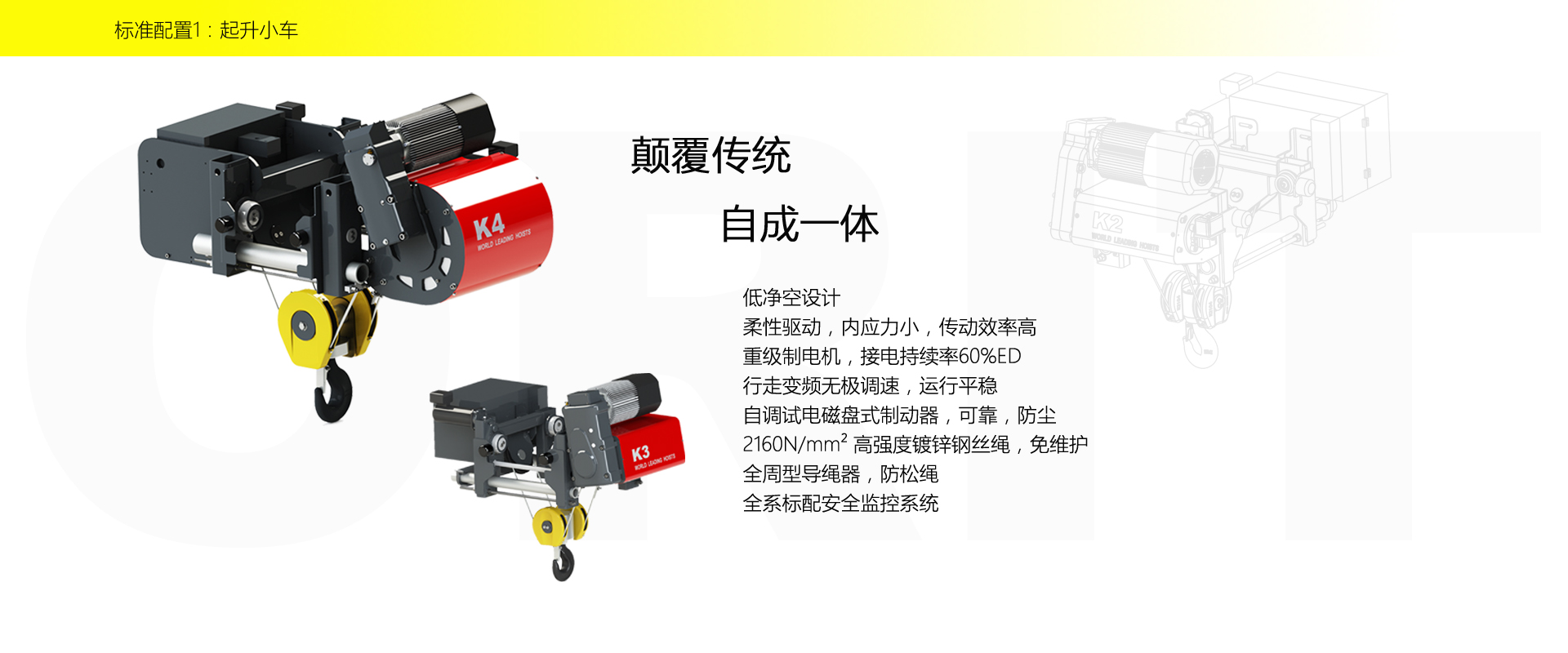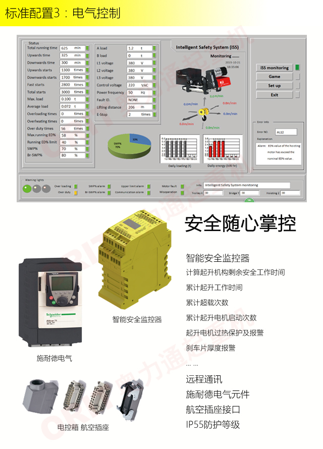 產品名稱:半門式起重機 優化設計,結構緊湊 變頻控制,運行平穩 實時安全監控,確保吊運安全 龍門吊專用C型驅動,節約空間 平軌設計,地面無障礙 美觀大方,視野開闊,便于物流 標準化配置,讓性能無比穩定 適用于12.5t以下額定載荷 標準配置1:起升機構 顛覆傳統,自成一體 低凈空設計 柔性驅動,內應力小,傳動效率高 重級制電機,接電持續率60%ED 行走變頻無極調速,運行平穩 自調試電磁盤式制動器,可靠,防塵 2160N/mm2 高強度鍍鋅鋼絲繩,免維護 全周型導繩器,防松繩 全系標配安全監控系統 標準配置2:三合一驅動 靜音科技,靜享搬運 結構緊湊,鋁合金殼體,密封 變頻電機+硬齒面減速箱+盤式制動器 龍門專用C型三合一集成化設計,節約空間 全變頻調速 最高轉速4800 r/min 防護等級IP55 半油脂潤滑,免維護 靜音科技,靜享搬運 標準配置3:電控系統 安全隨心掌控 智能安全監控器 計算起升機構剩余安全工作時間 累計起升工作時間 累計超載次數 累計起升電機啟動次數 起升電機過熱保護及報警 剎車片厚度報警 ... ... 遠程通訊 施耐德電氣元件 航空插座接口 IP55防護等級 標準配置4:端梁 多變靈活,適應自如 模塊化直驅設計 自重輕、體積小 多種連接方式,安裝尺寸靈活 適用各種廠房,降低廠房高度 QT700車輪,自潤滑,更靜音 采用調心軸承,適應更自如 獨特的平軌設計,地面無死角,物流無障礙 平軌半門式起重機,工業設計的匠心所在
